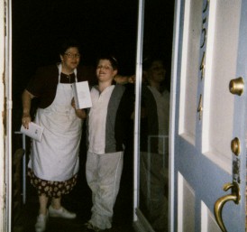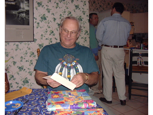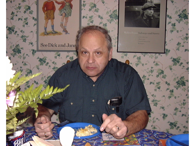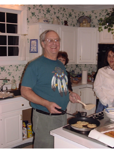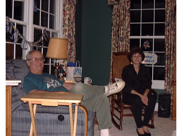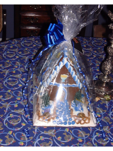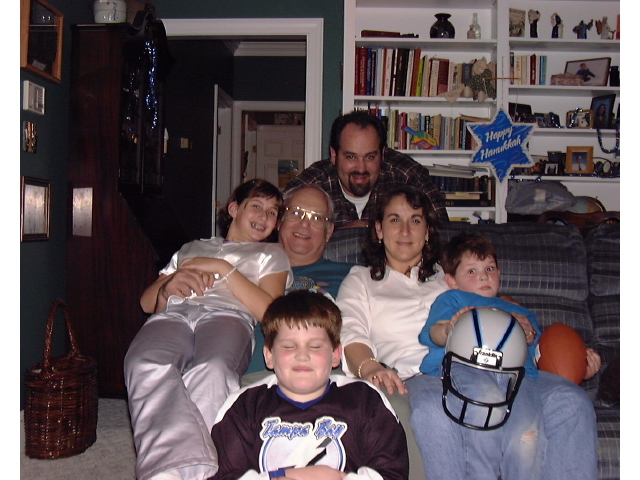 Herb making latkas Ronnie with Jackson Herb unwrapping his presents Herb with his presents Kim and Kay at the party Kim and Akiva Uncle Tobie Ronnie and Sarah The Drucker Family Hannukah Gingerbread House End of the night